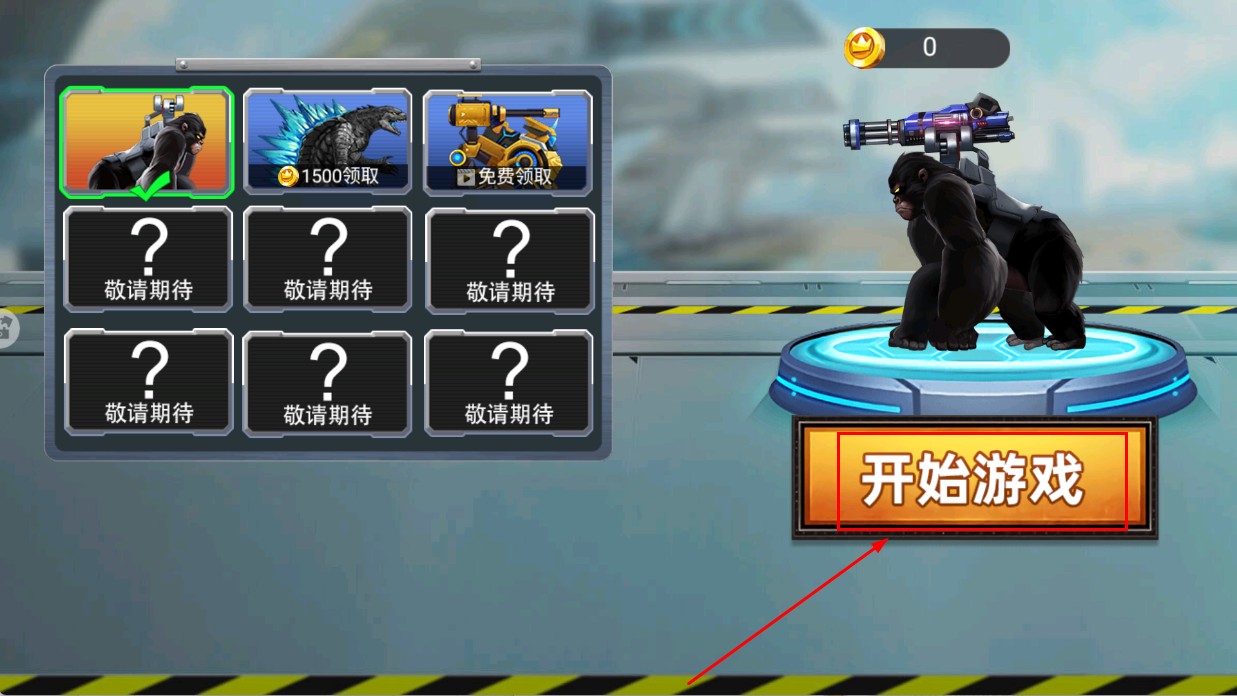 1、选择已解锁的【金刚】怪兽,点击【开始游戏】按钮,进入关卡开启动作闯关的战斗之旅。