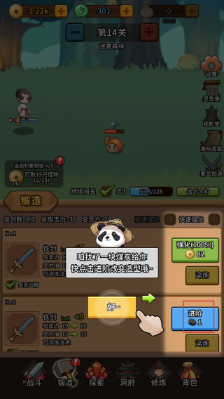3、在锻造界面进阶武器,提升战力,增强角色战斗能力,为关卡挑战提供支持。