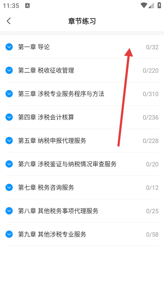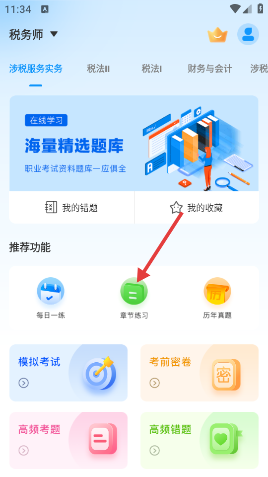 2、进入主界面,在推荐功能里点击【章节练习】。