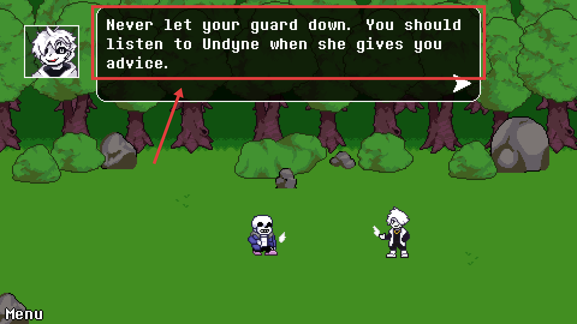 2、剧情对话中留意角色提示,听取【Undyne】的建议能帮助应对后续战斗,避免放松警惕。