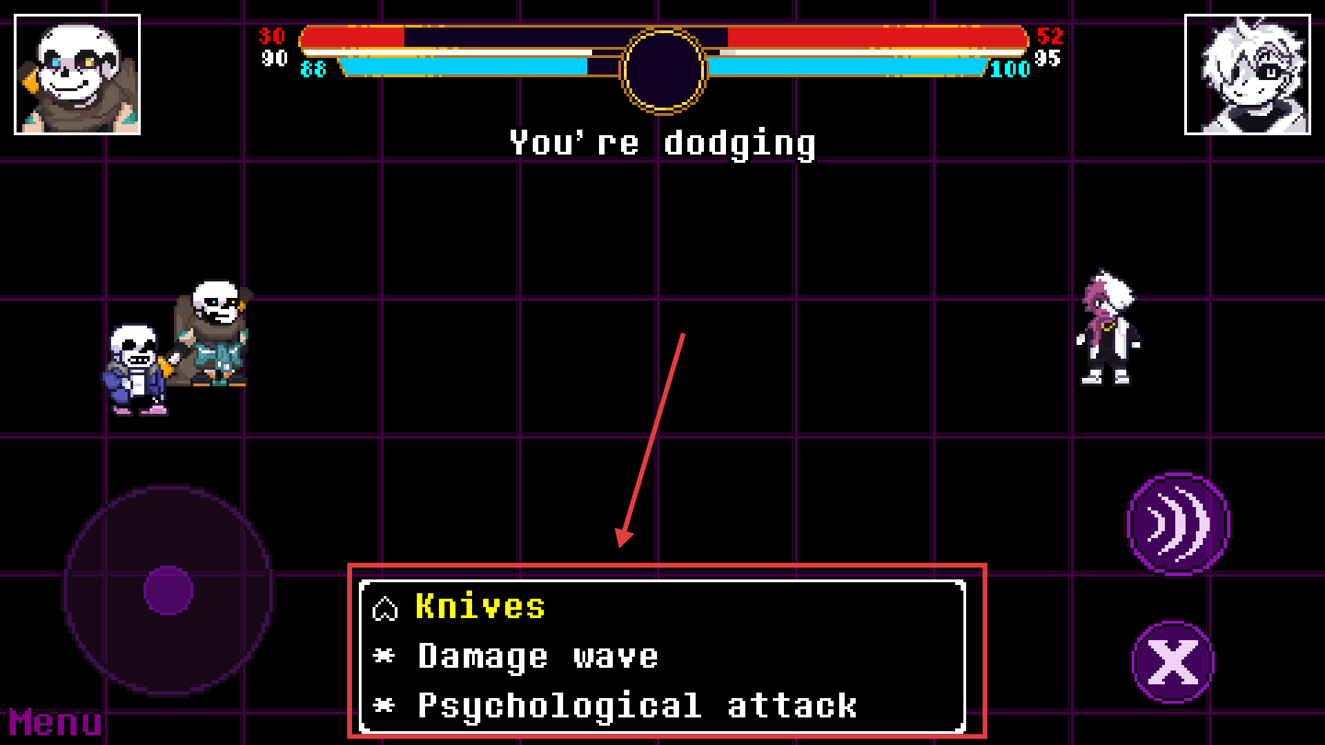 4、闪避阶段关注敌方攻击,利用【Knives】-【Damagewave】-【Psychologicalattack】技能躲避伤害。