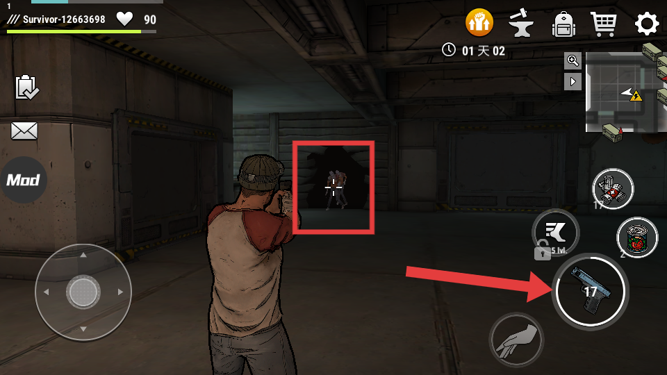 1、利用内置作弊菜单获得武器强化、无限生命等优势后,使用武器【精准射击】消灭场景中的丧尸,推进游戏进程。