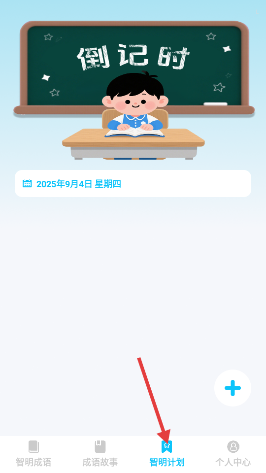 3、点击底部【智明计划】,可看到倒计时及日期,点击右侧“+”可添加计划。