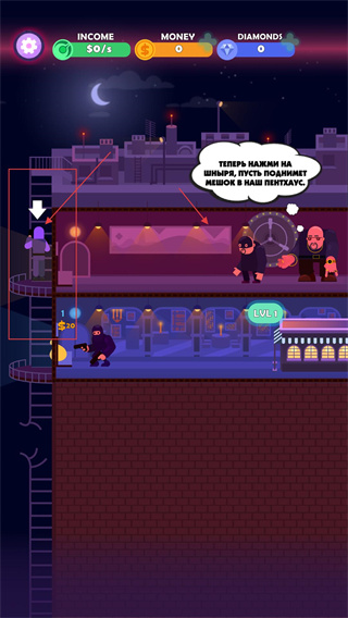 3、点击劫匪角色,使其将钱袋运送至团伙据点,单次运送可获得20美元收益,持续执行该操作以积累初始资金。