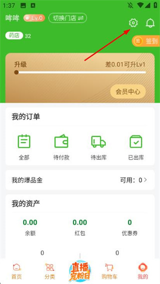 1、在个人页面,点击右上角设置图标,进入设置页面。