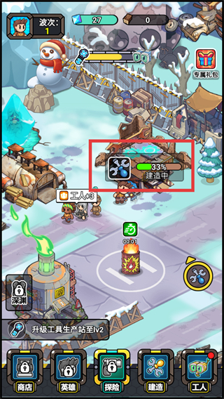 2、等待建筑建造进度(如33%)完成,提升建筑功能和产出。