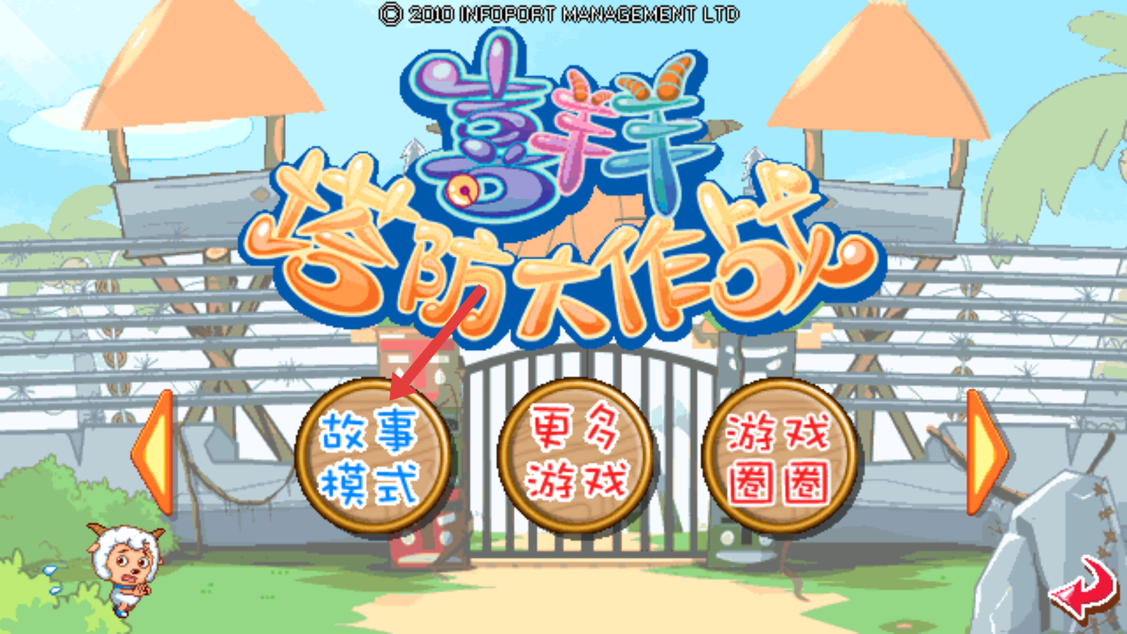 1、点击红色箭头指向的【故事模式】按钮,进入游戏模式选择界面。