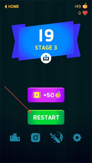 4、点击【RESTART】重新挑战关卡,可尝试优化投掷节奏,冲击更高的关卡分数。