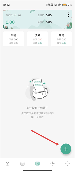 2、在资产页面,点击右下角【+】按钮,就能添加资金账户啦。