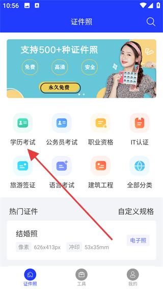 超过500种专业的证件照等着你来选择,选择到你想要的证件照来进行拍摄。