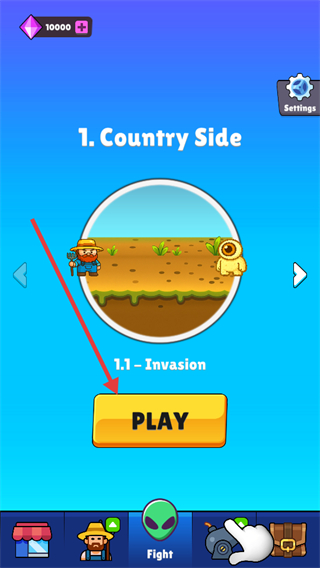 1、选择关卡,点击【PLAY】按钮进入游戏,开启乡村入侵主题的泡泡射击挑战。