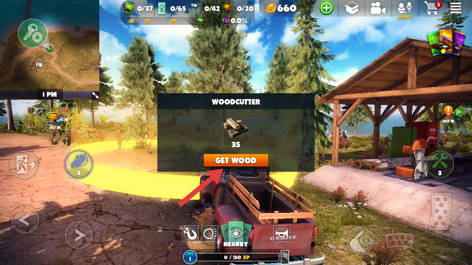 2、到达伐木点后,点击【GET-WOOD】,获取木材资源,积累材料。