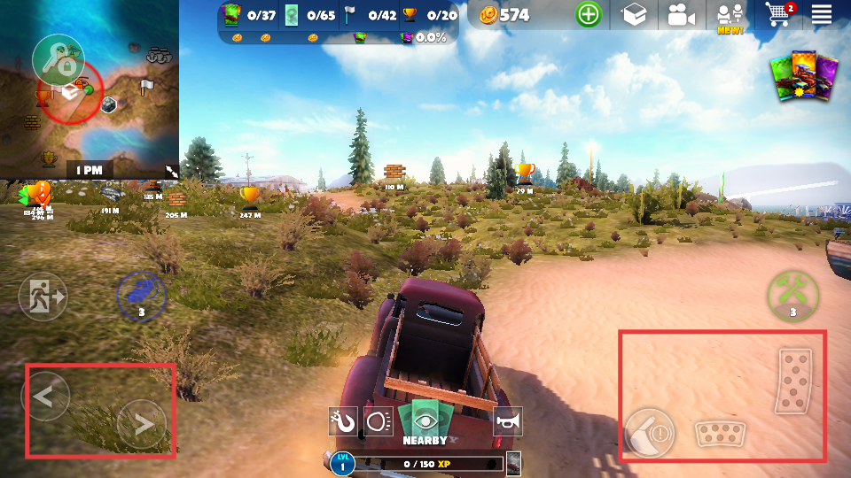 1、使用左右控制按钮和右侧操作区域驾驶车辆,在岛屿上探索,推进游戏任务。