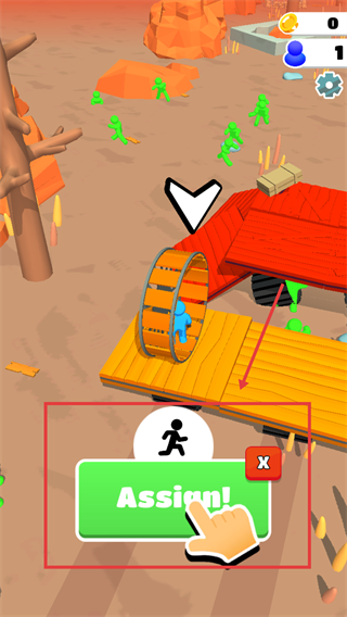 1、进入游戏后点击【Assign】按钮指派蓝色小人执行任务,收集木板木棍等道具扩展载具,警惕丧尸靠近基地。