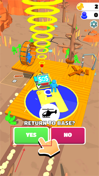 4、触发【SOS】后出现返回基地选项,点击绿色【YES】按钮返回,途中击退围上来的丧尸确保安全。
