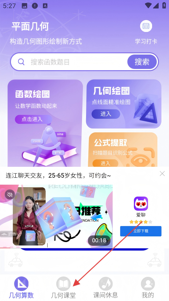 1、点击底部导航栏的【几何课堂】,进入几何课堂页面。