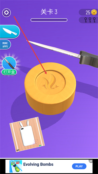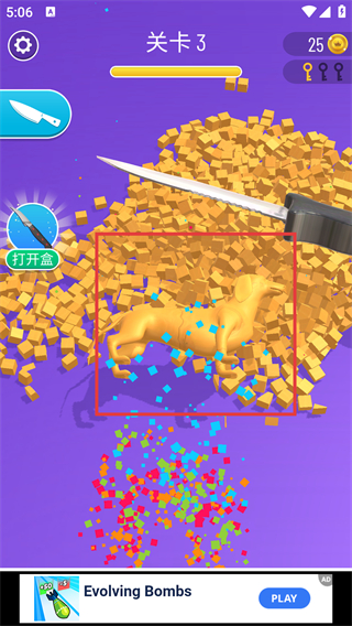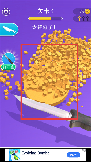 1、进入关卡后,使用刀具开始切割目标物体,逐步完成切割任务积累进度。