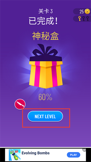 4、完成当前关卡后点击【NEXTLEVEL】进入下一关。