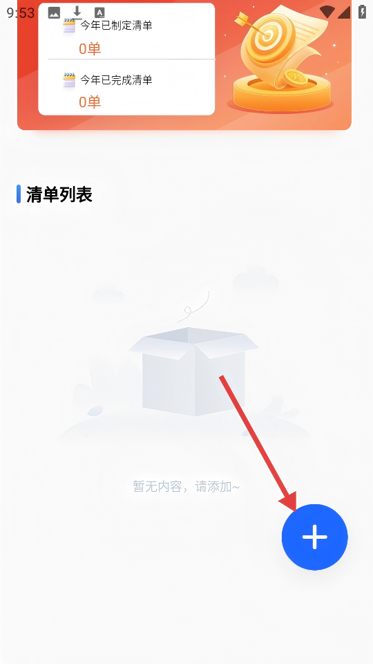 2、当清单列表暂无内容时,点击页面右下角的蓝色【+】号按钮,添加新的清单。