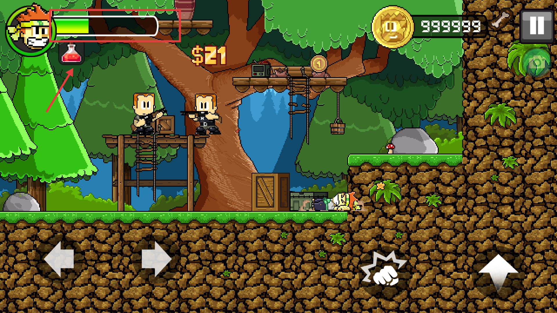4、关卡中注意收集【红色药水】等道具,利用道具对抗敌人,同时收集金币提升自身实力,顺利通关。