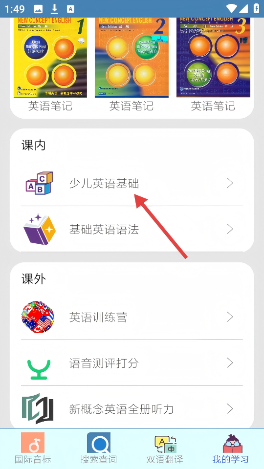2、在【我的学习】页,点击【少儿英语基础】,进入对应课程学习。