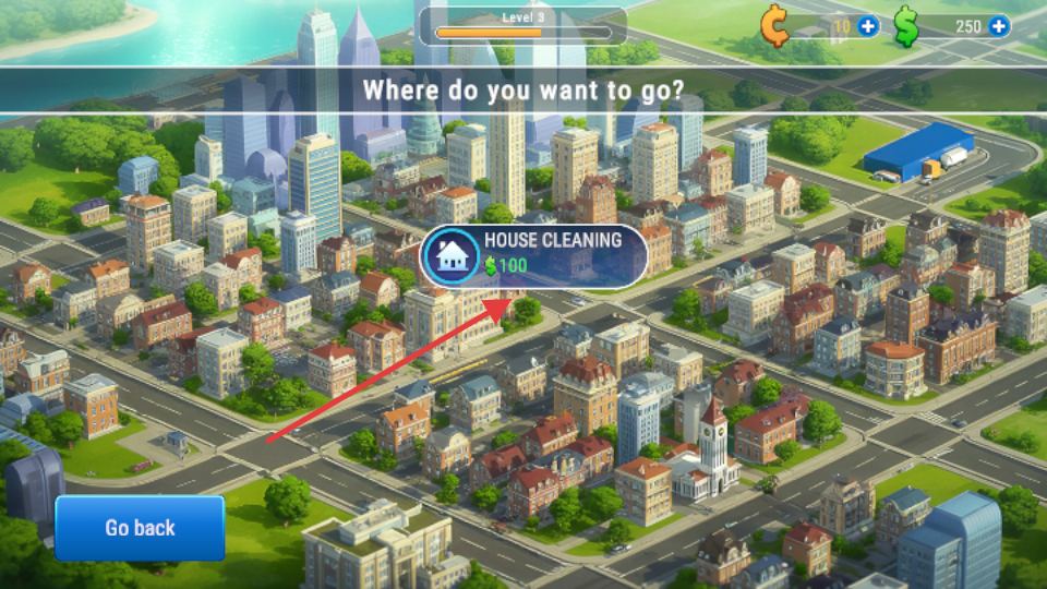 1、在Level3中,选择任务,花费$100前往房屋清洁地点,开启新的清洁任务。