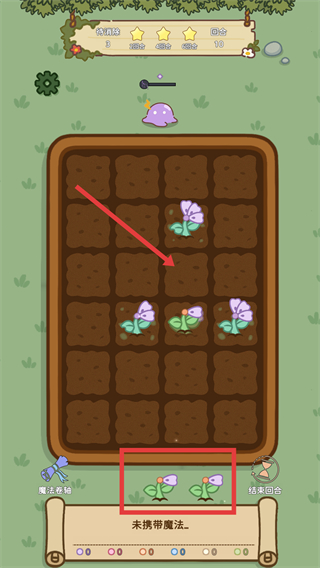 3、让红色框内的植物成长,形成花朵,完成关卡目标。