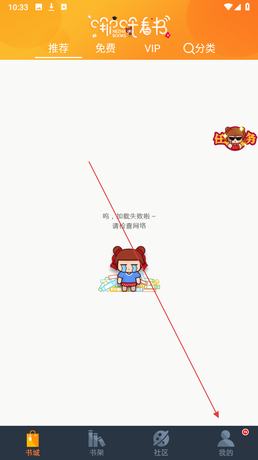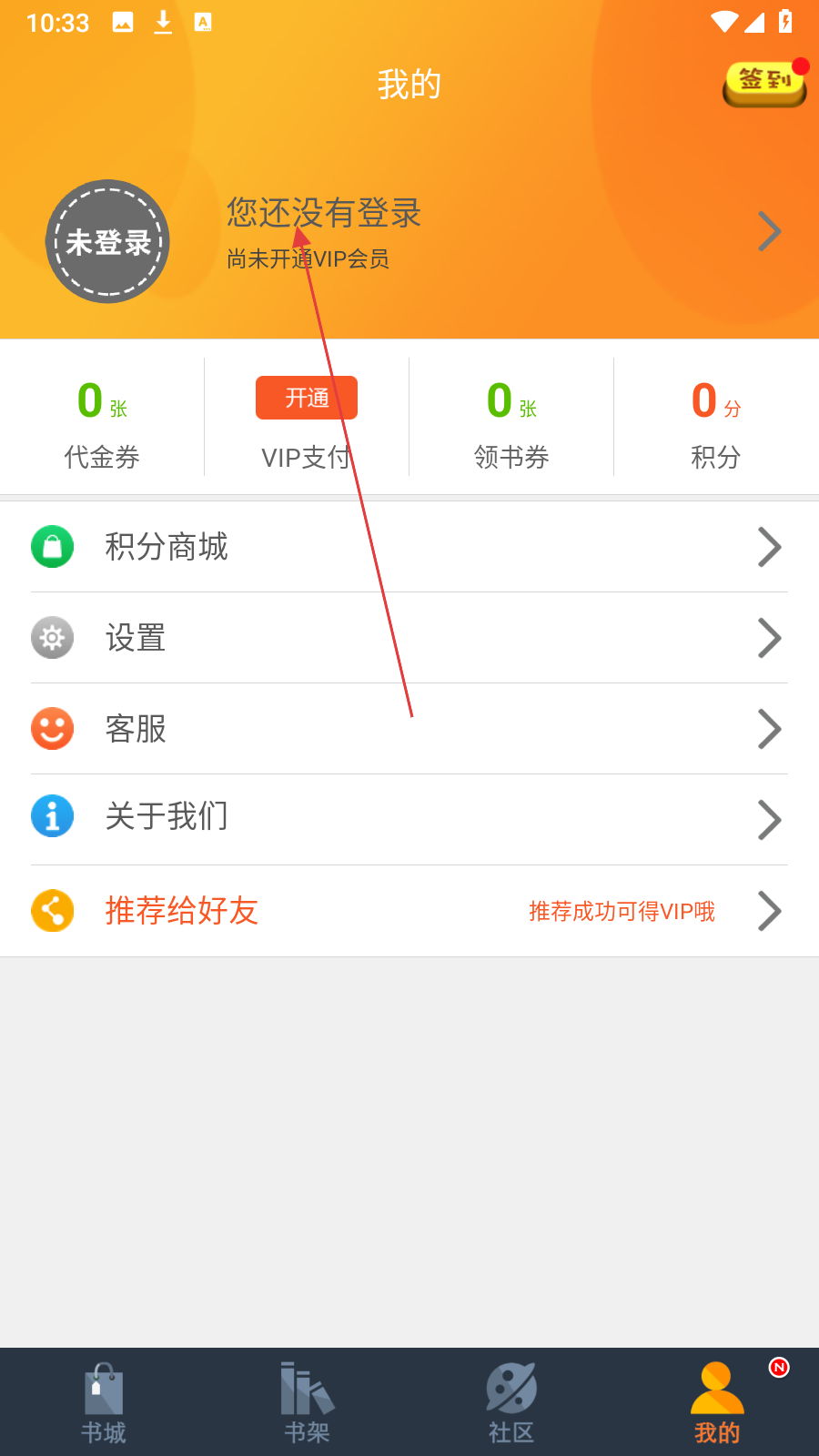 1、在书城页面,点击底部【我的】,进入个人页面。