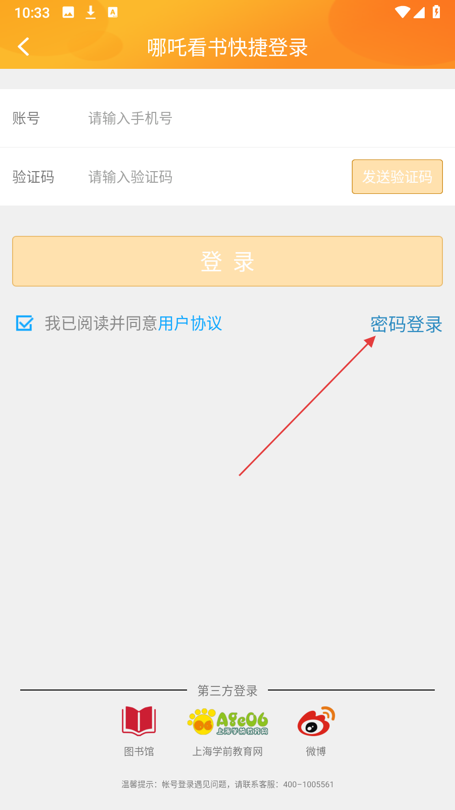 3、在登录页面,点击【密码登录】,进入密码登录页面。