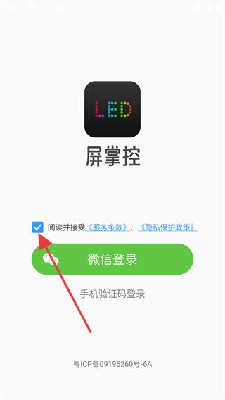 1、打开屏掌控登录页,先勾选“阅读并接受《服务条款》《隐私保护政策》”。