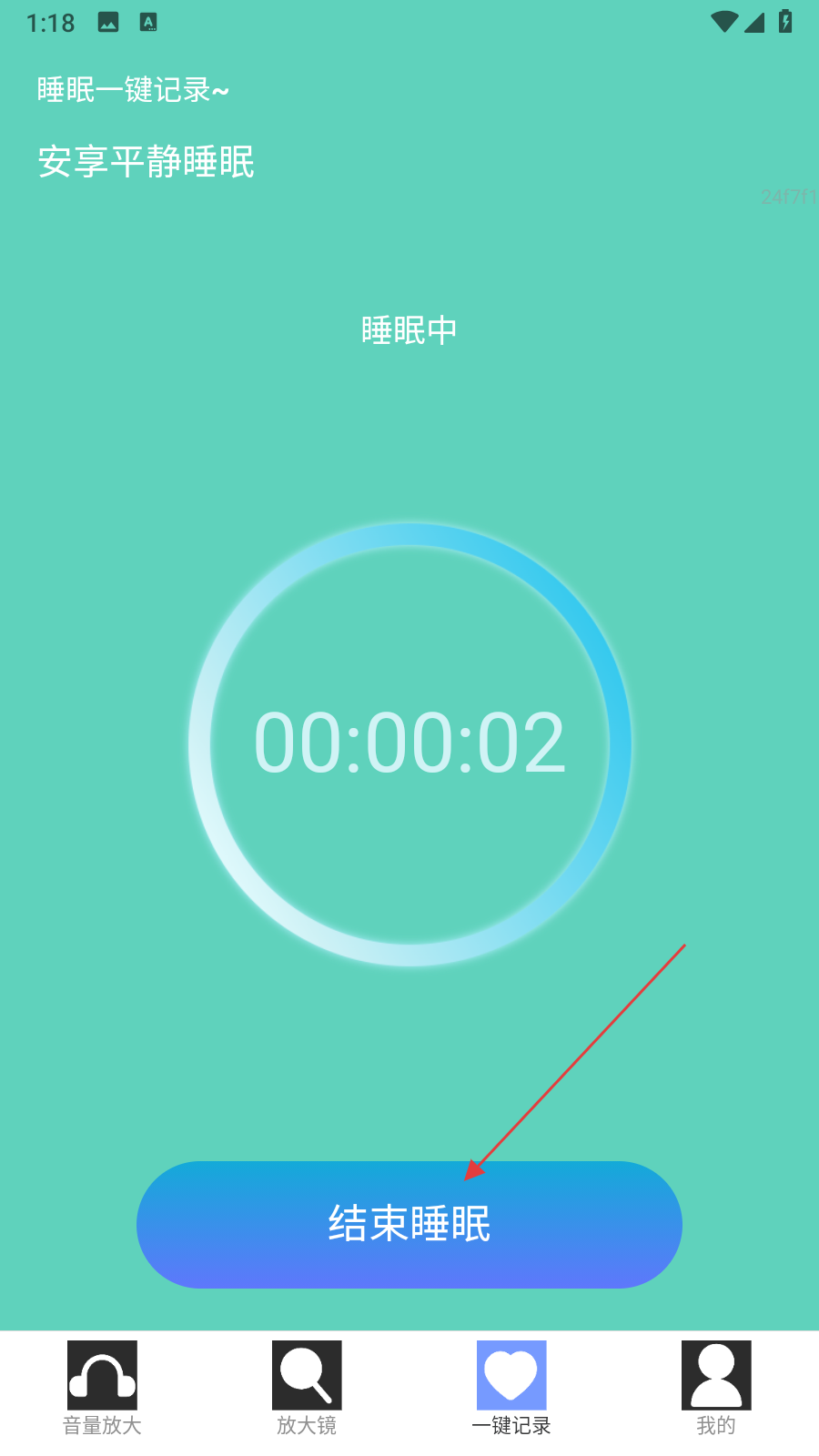 3、睡眠结束后,点击【结束睡眠】,停止睡眠时长记录。