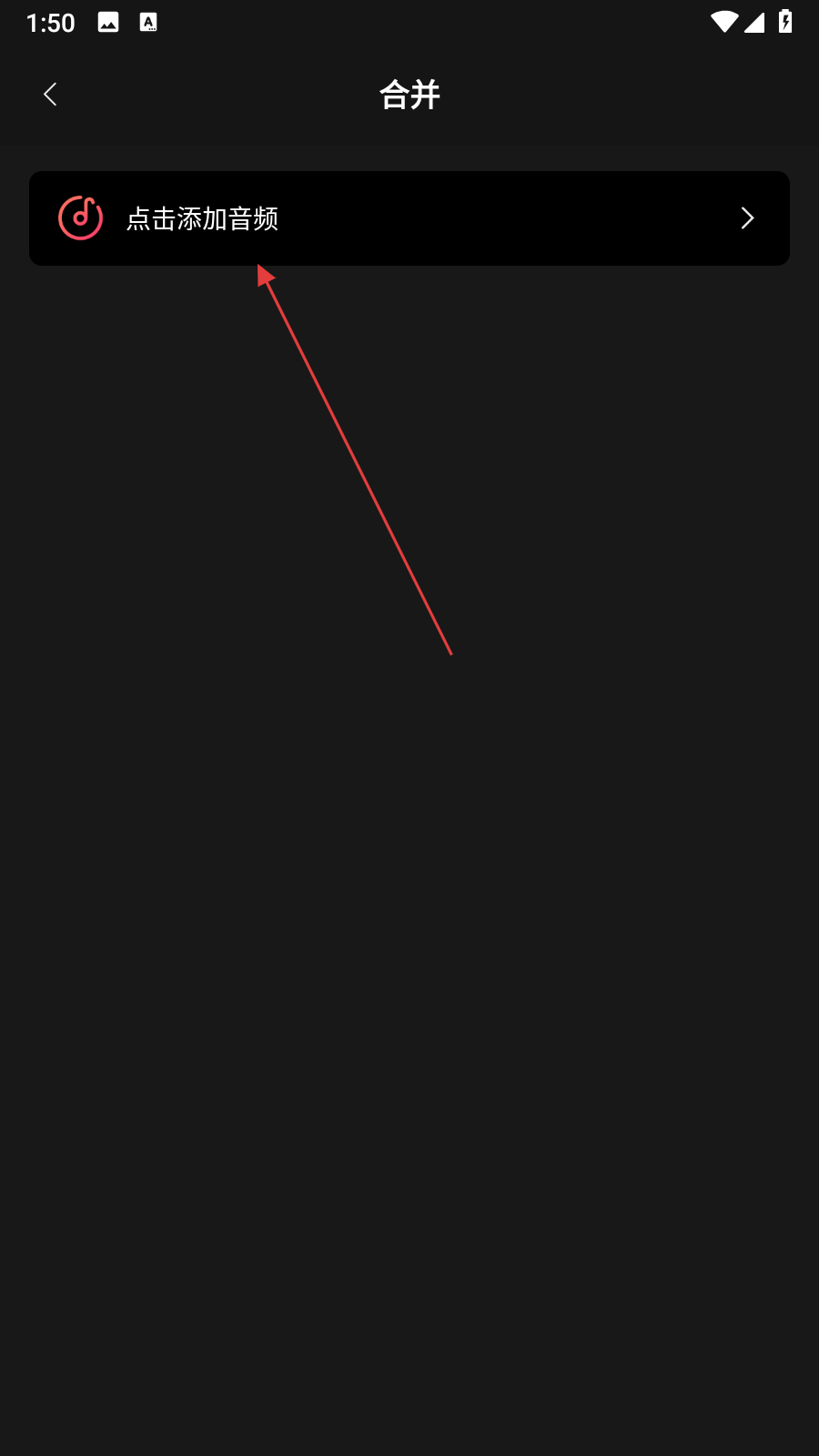 2、在音频合并页面,点击【点击添加音频】,进入选择音频界面。