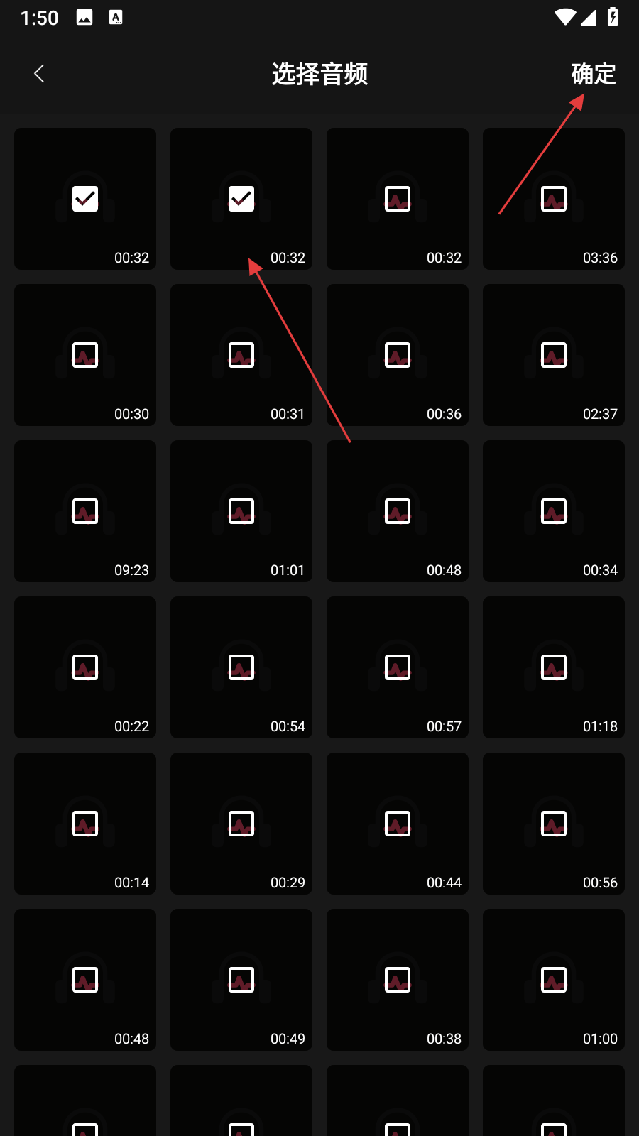 3、在选择音频界面,勾选【要合并的音频】,点击【确定】,添加音频到合并列表。