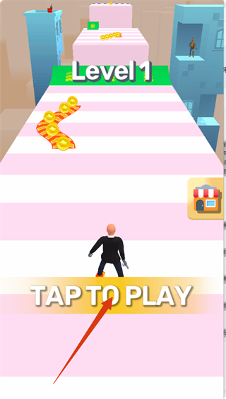 1、在Level1界面,点击【TAPTOPLAY】开始游戏,注意收集路径上的金币,熟悉游戏操作方式。