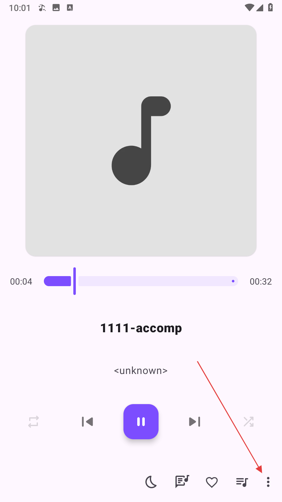 2、进入歌曲播放界面,点击【右下角三点图标】,弹出功能选项菜单。