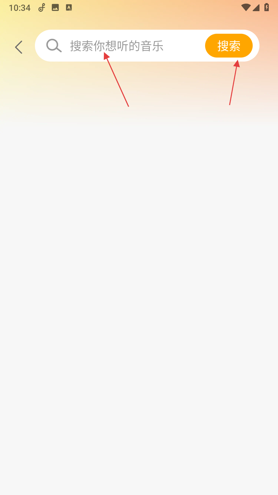 2、在搜索页面的搜索框中【输入想听的音乐】,点击【搜索】。