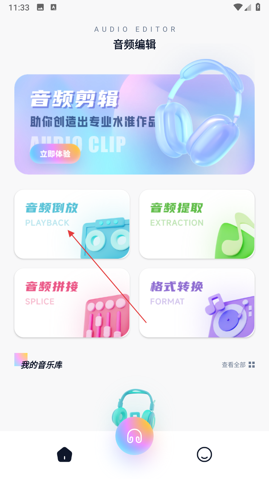 1、在音频编辑界面,点击【音频倒放】,进入选择音频页面。