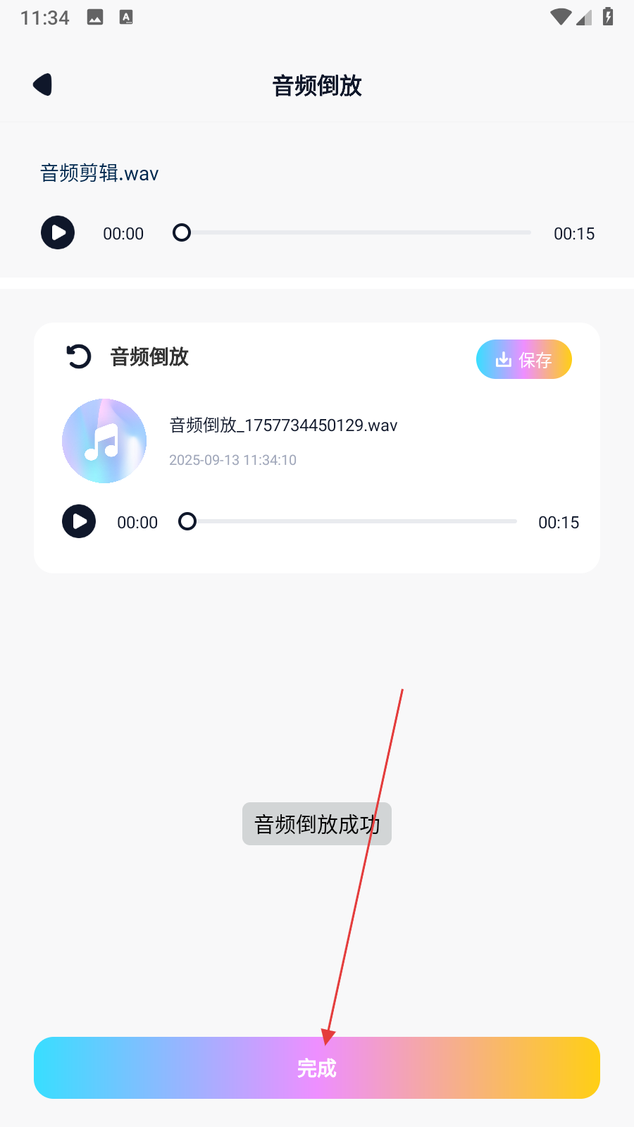 4、音频倒放成功后,点击【完成】,即可完成音频倒放操作。
