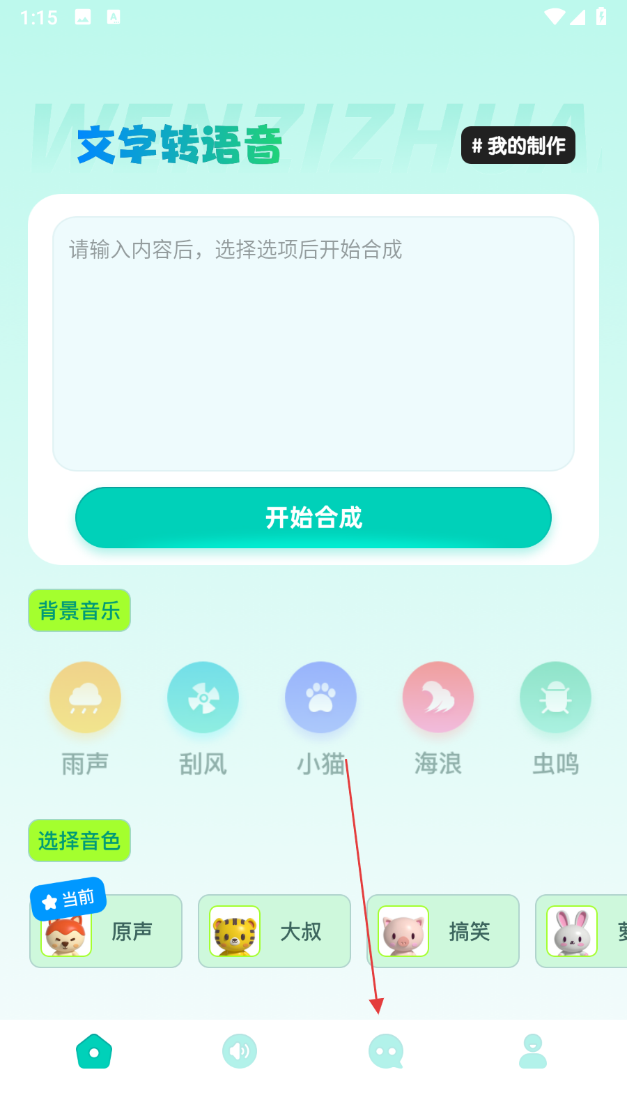 1、在文字转语音主界面,点击底部【聊天图标】,进入语音包页面。