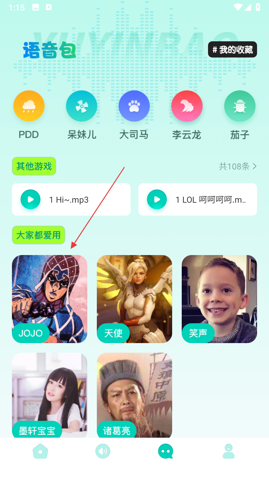 2、在语音包页面,点击大家都爱用板块里的【喜欢的语音包】,进入语音包详情页。