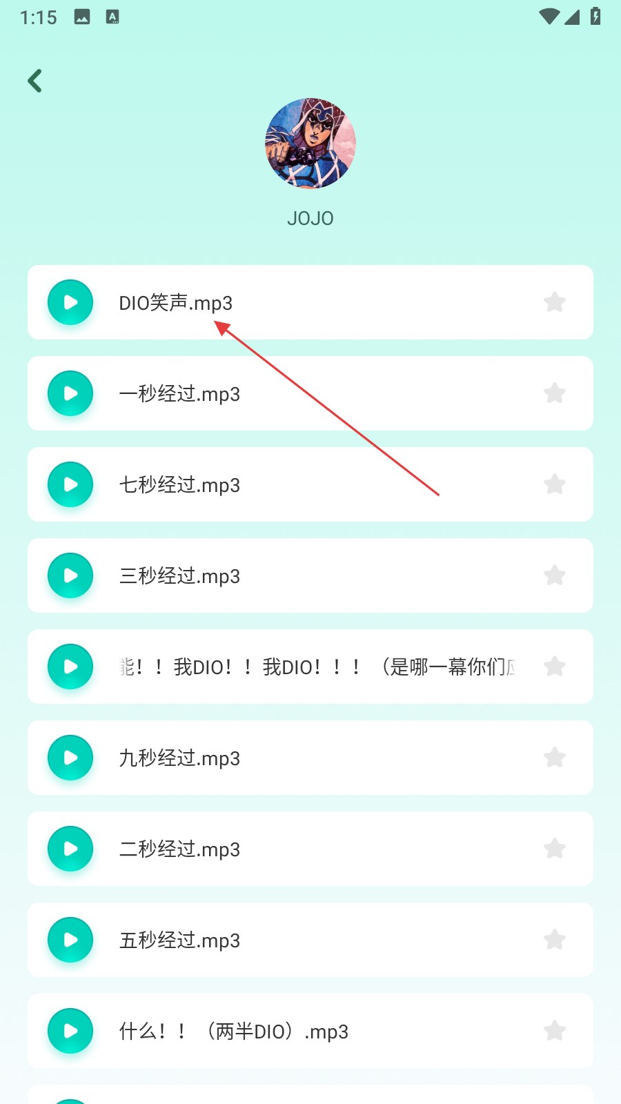 3、在语音包详情页,点击要使用的【语音文件】,如DIO笑声。