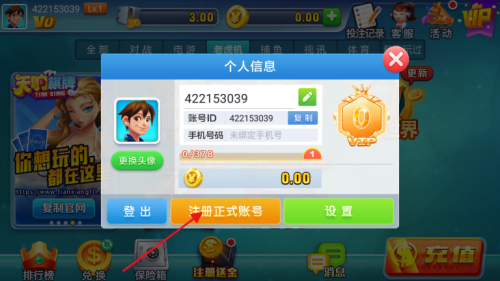 2、随后在个人信息界面点击注册正式账号;