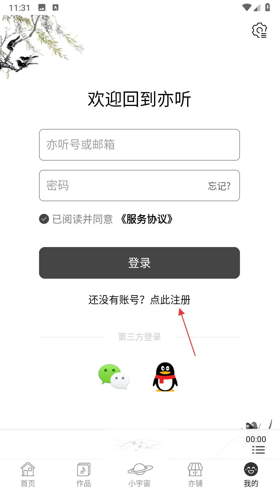 1、在亦听首页,点击底部【我的】,进入登录页面。