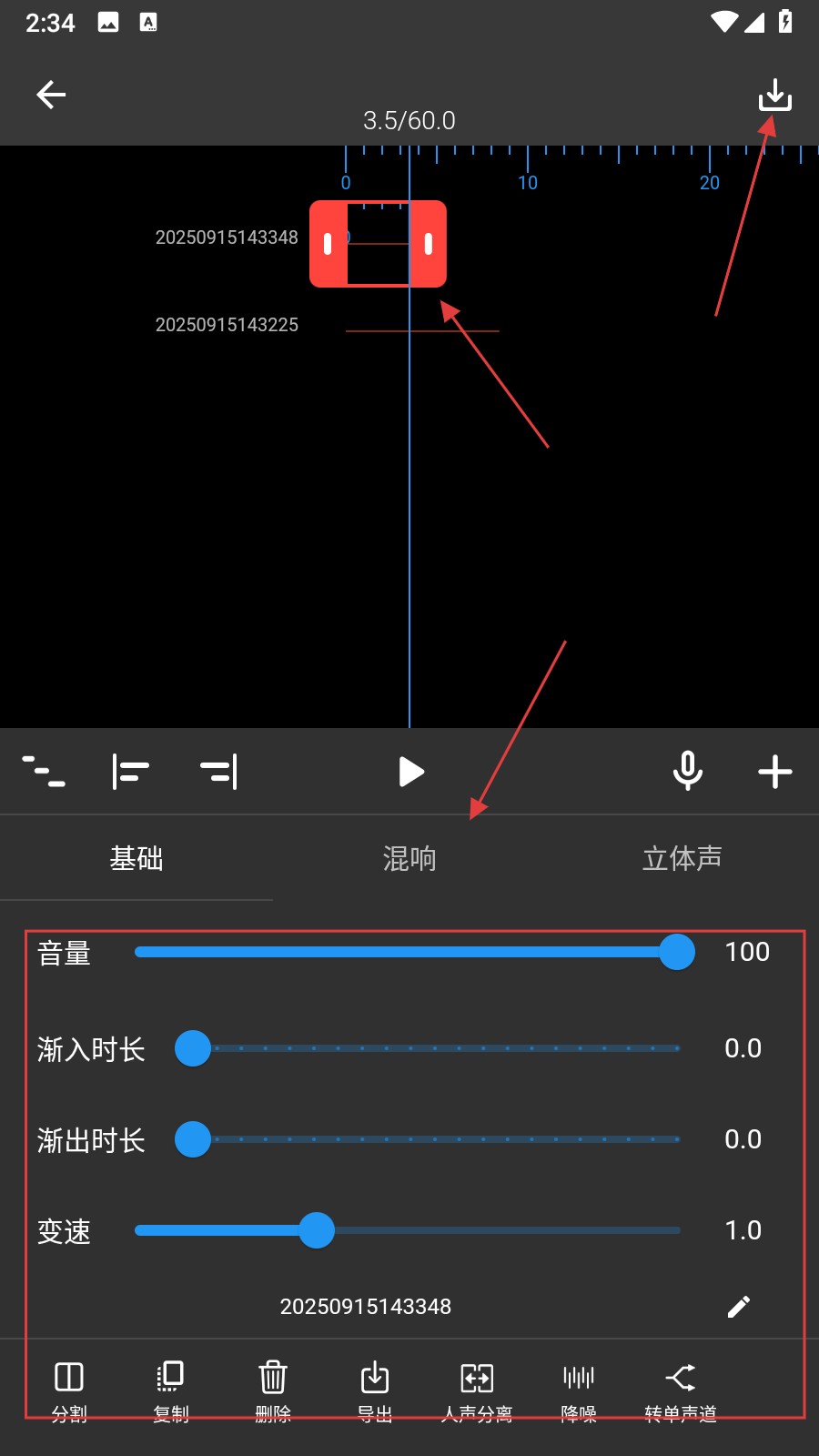 4、选好音频素材后,可在界面中对【音频进行剪辑】,最后点击【导出保存】即可保存音频。