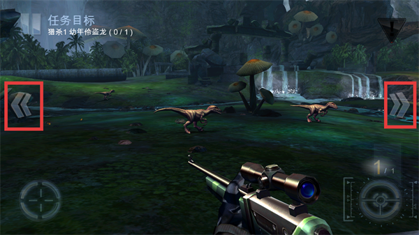 1、操作左右移动键调整身位,找到合适狩猎角度,做好狩猎前的准备工作。