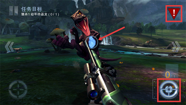 4、当【幼年伶盗龙】扑袭而来时,瞄准其心脏部位点击射击键,可一击毙命,顺利完成本次猎杀任务。