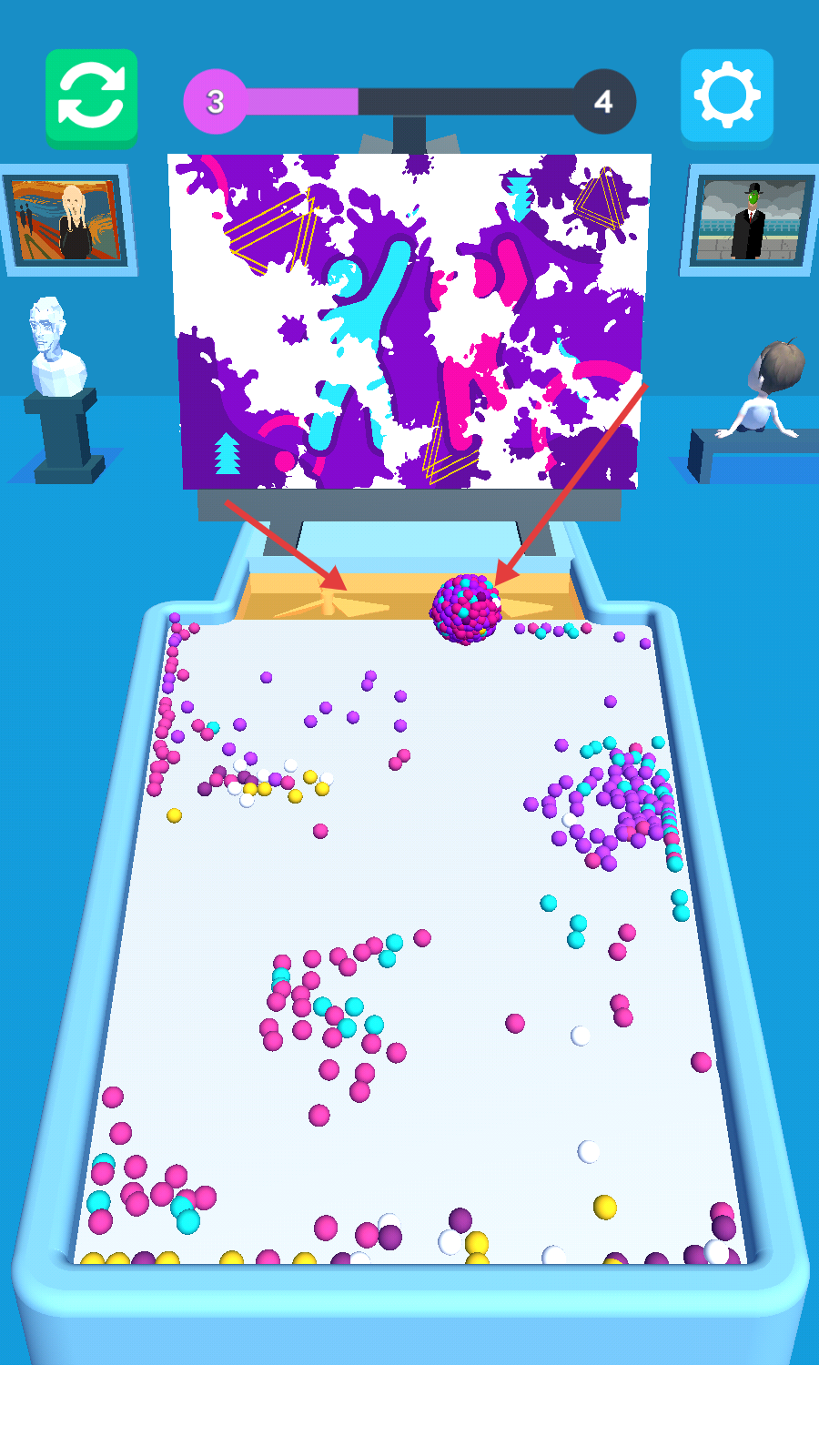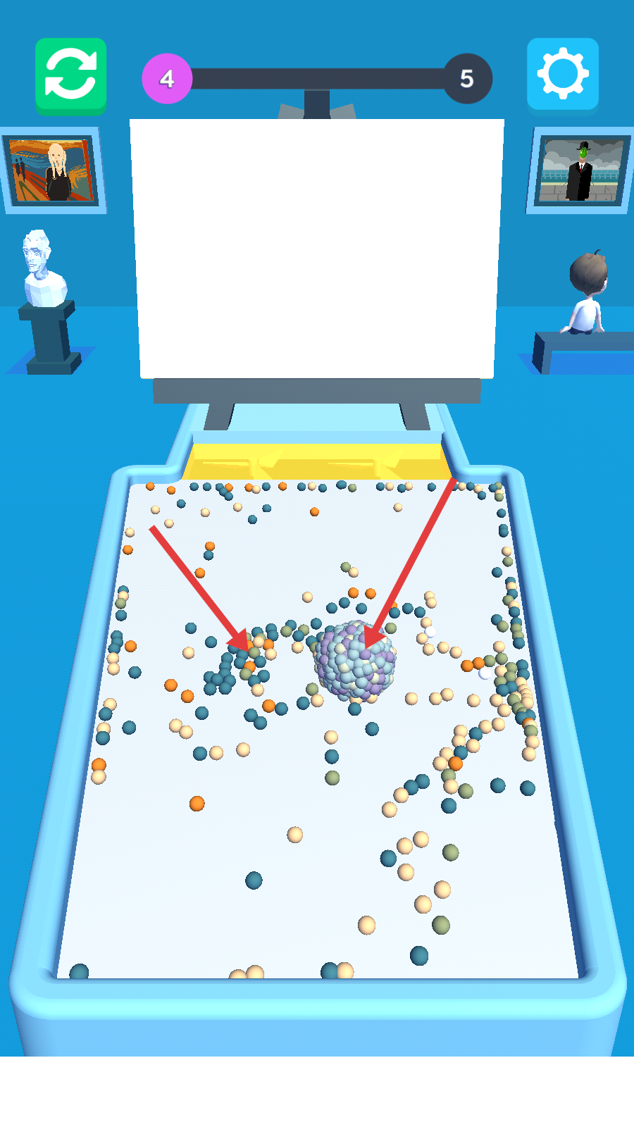 2、操控球体,收集更多的彩色小球,使小球能在画板上作画。
