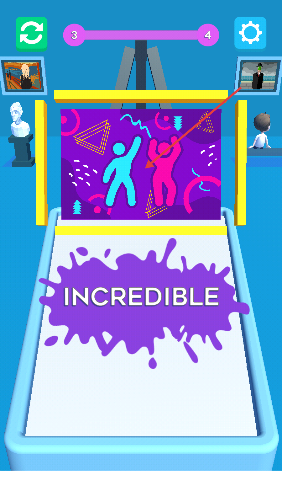 4、成功完成画作后,会出现【INCREDIBLE】提示,继续挑战下一幅画。