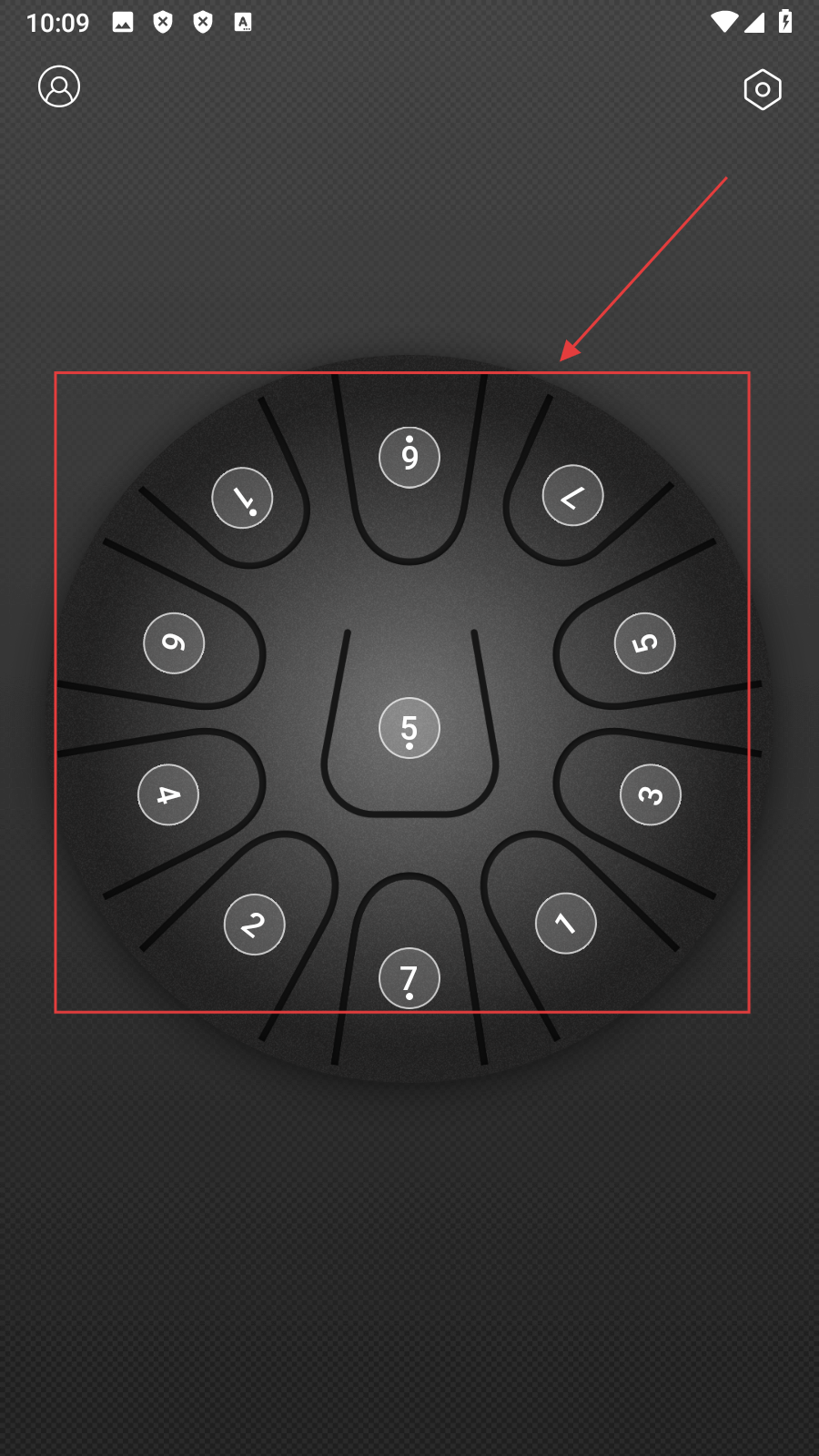 1、进入空灵鼓界面,可看到【圆形的空灵鼓音位分布】,准备开启演奏或设置之旅。
