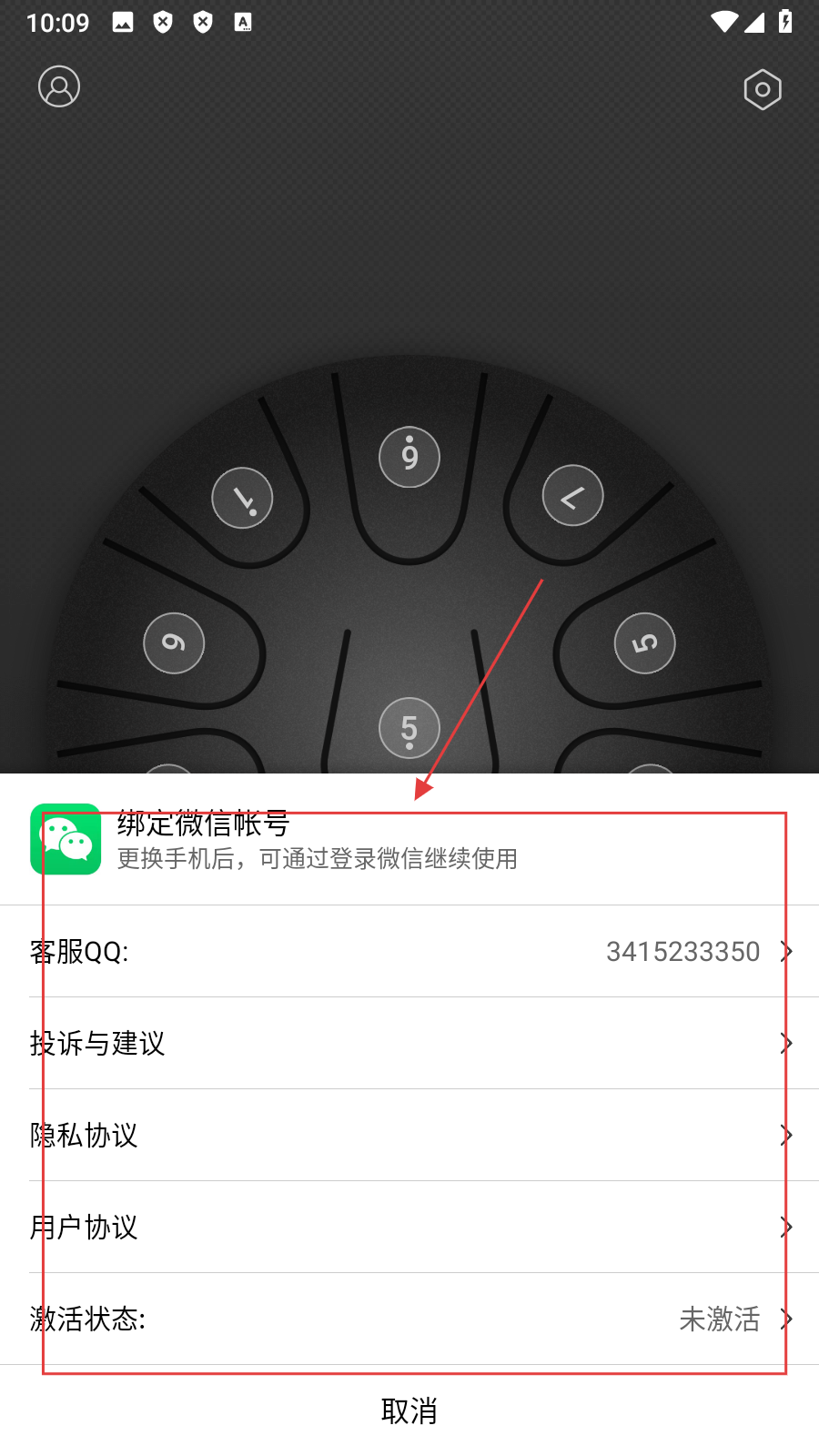 3、在我的页面,弹出包含【绑定微信帐号、客服QQ等选项的页面】,可进行相关操作。